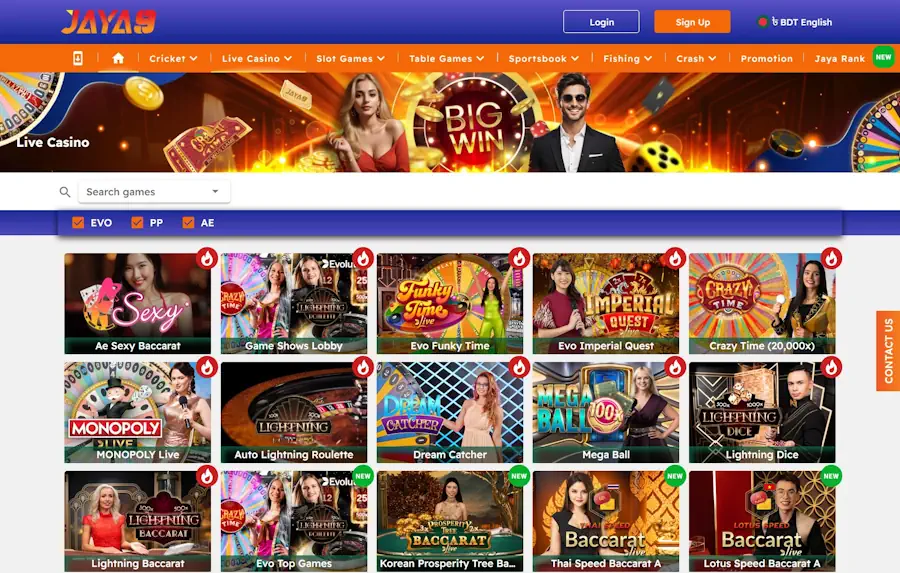 The library at JAYA9 houses over 25 software providers, a count that aligns with mid-tier Asian operators. The breakdown covers the essential categories: slots, live casino tables, sports betting, and specialized lotteries. Evolution Gaming handles the heavy lifting for the live dealer section, offering high-definition streams of baccarat, blackjack, and roulette. For the Bangladeshi audience, the inclusion of Teen Patti and Andar Bahar is mandatory, and JAYA9 delivers these via providers like Ezugi and Pragmatic Play.
